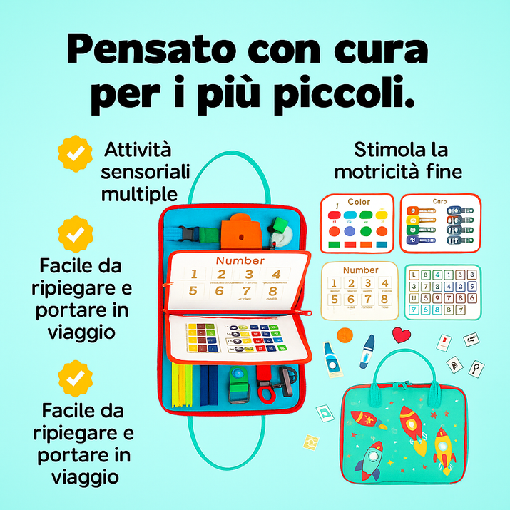 Scopri un modo innovativo per stimolare la crescita e lo sviluppo dei bambini con la nostra tavola sensoriale. È perfetta per affinare abilità motorie e incoraggiare l'apprendimento attraverso il gioco.